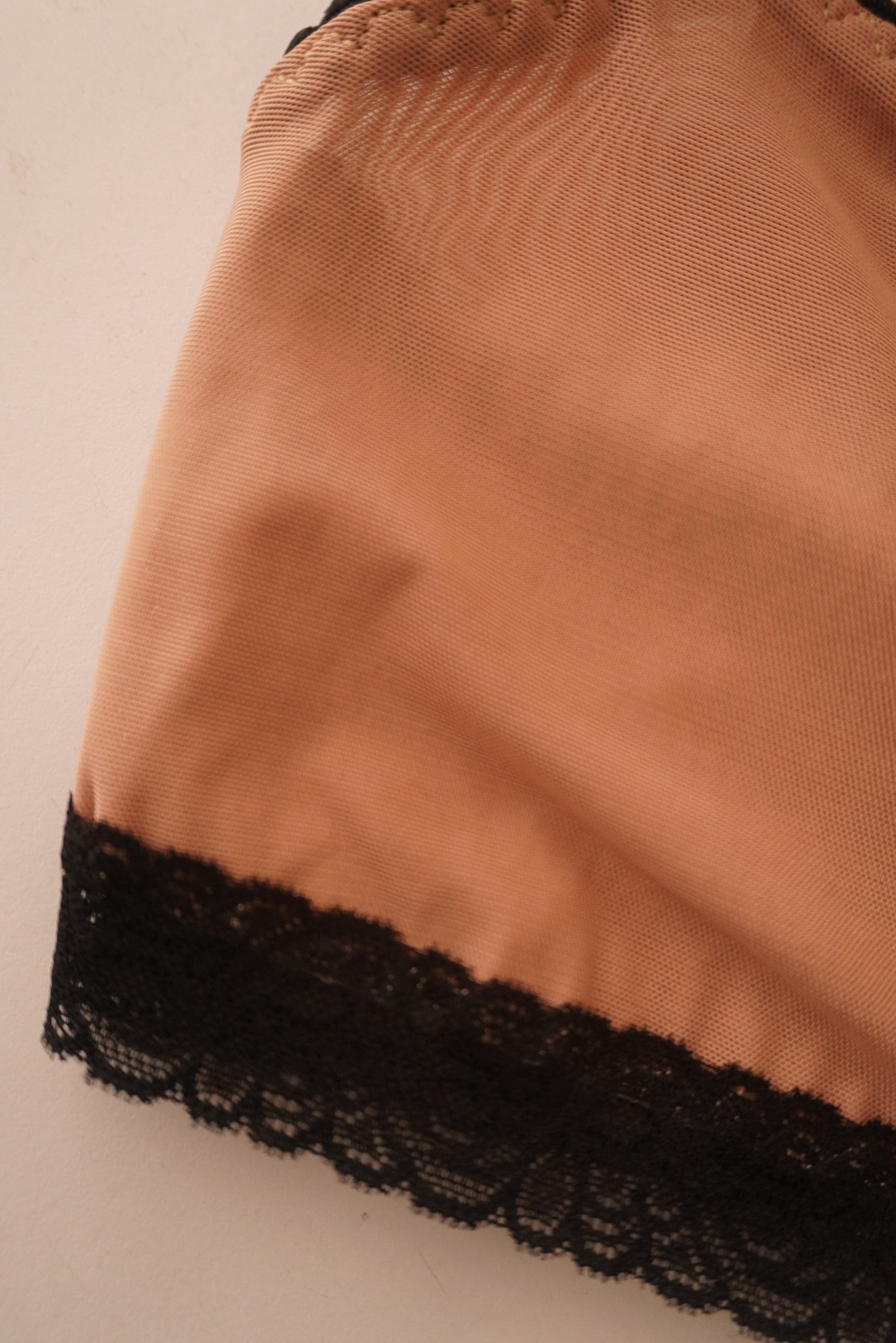 Top de copa larga con escote en V, doble capa de mesh en la parte frontal que da soporte y evita transparencias, tirantes ajustables y detalle de encaje en la parte inferior